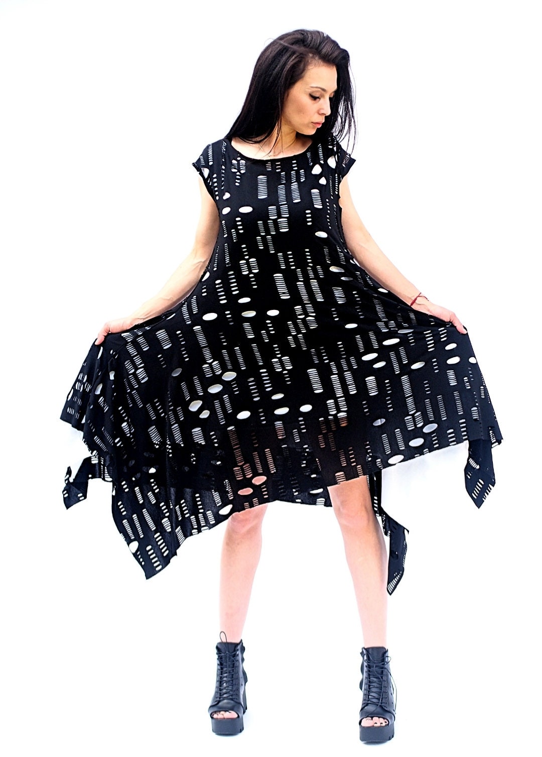 Long Asymmetric Women Dress Maxi Black Kaftan Loose