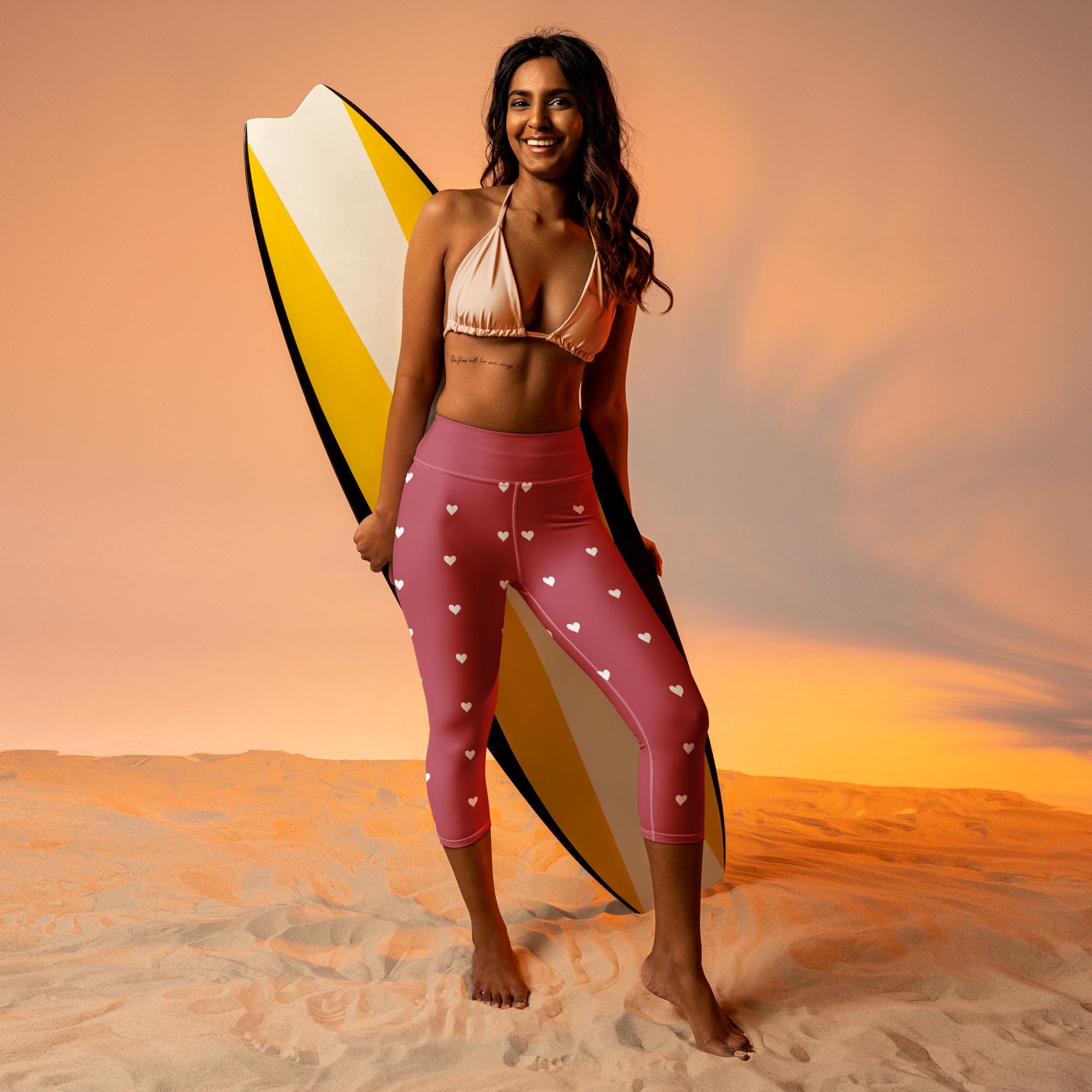These yoga capri red leggings with a high, elastic waistband are the perfect choice for yoga, the gym, or simply a comfortable evening at home.